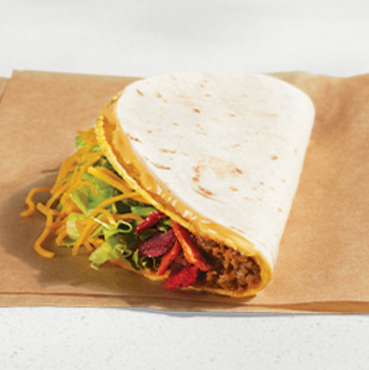 A flour tortilla filled with fluffy eggs, sausage, and melted three-cheese blend.aa